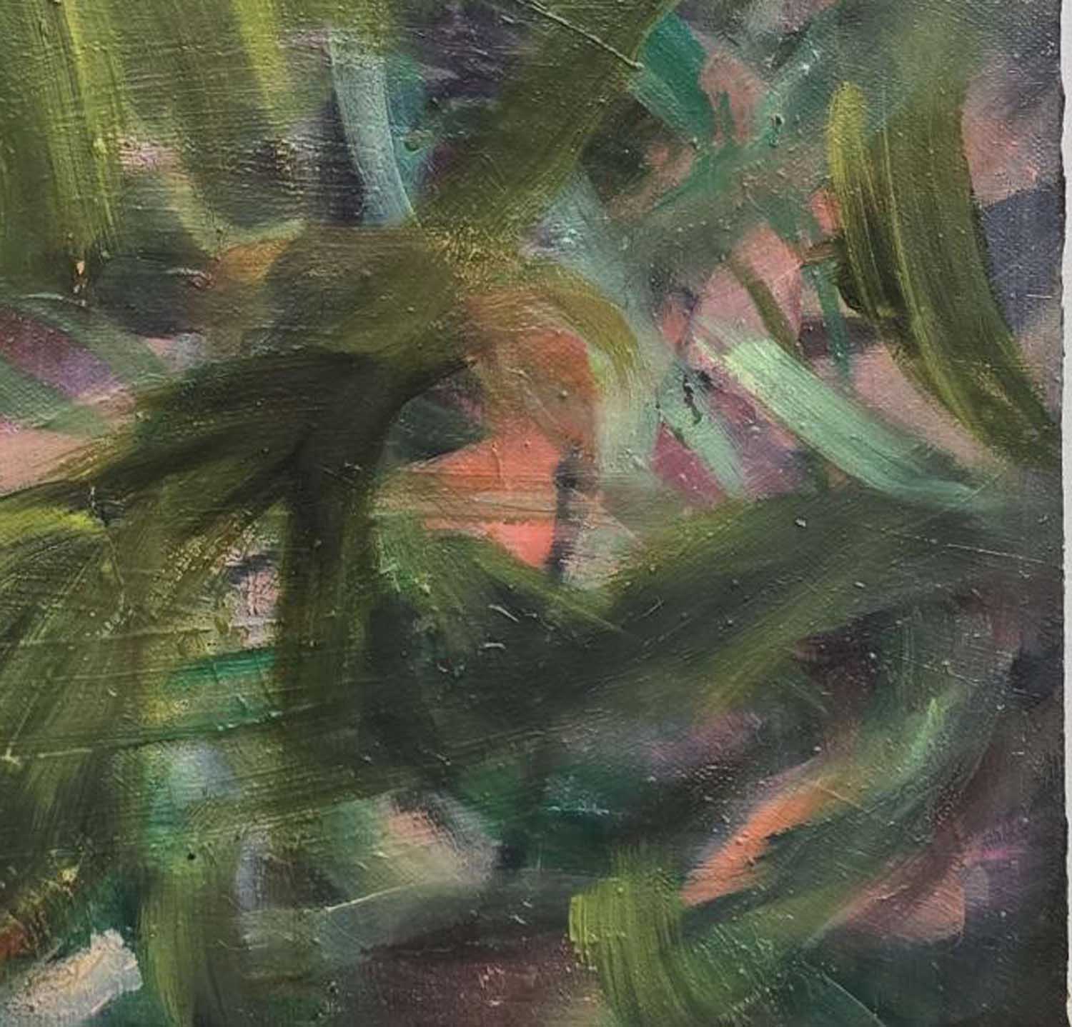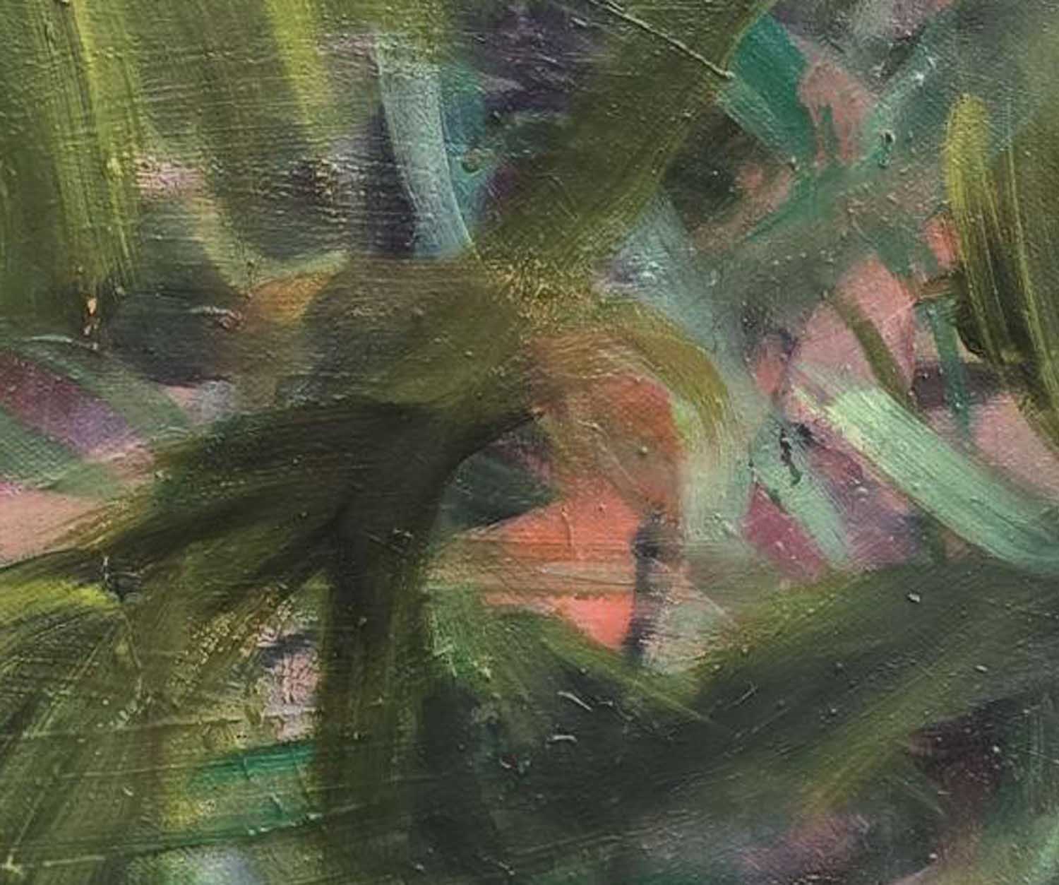 「狂草」是中國書法中最不羈的形式——懷素、張旭那些在宣紙上奔騰的線條,從來不是「寫字」,而是生命力的直接噴發。我想將這種精神轉譯到油彩中:如果顏色也能有筆勢,如果綠色也能狂舞?